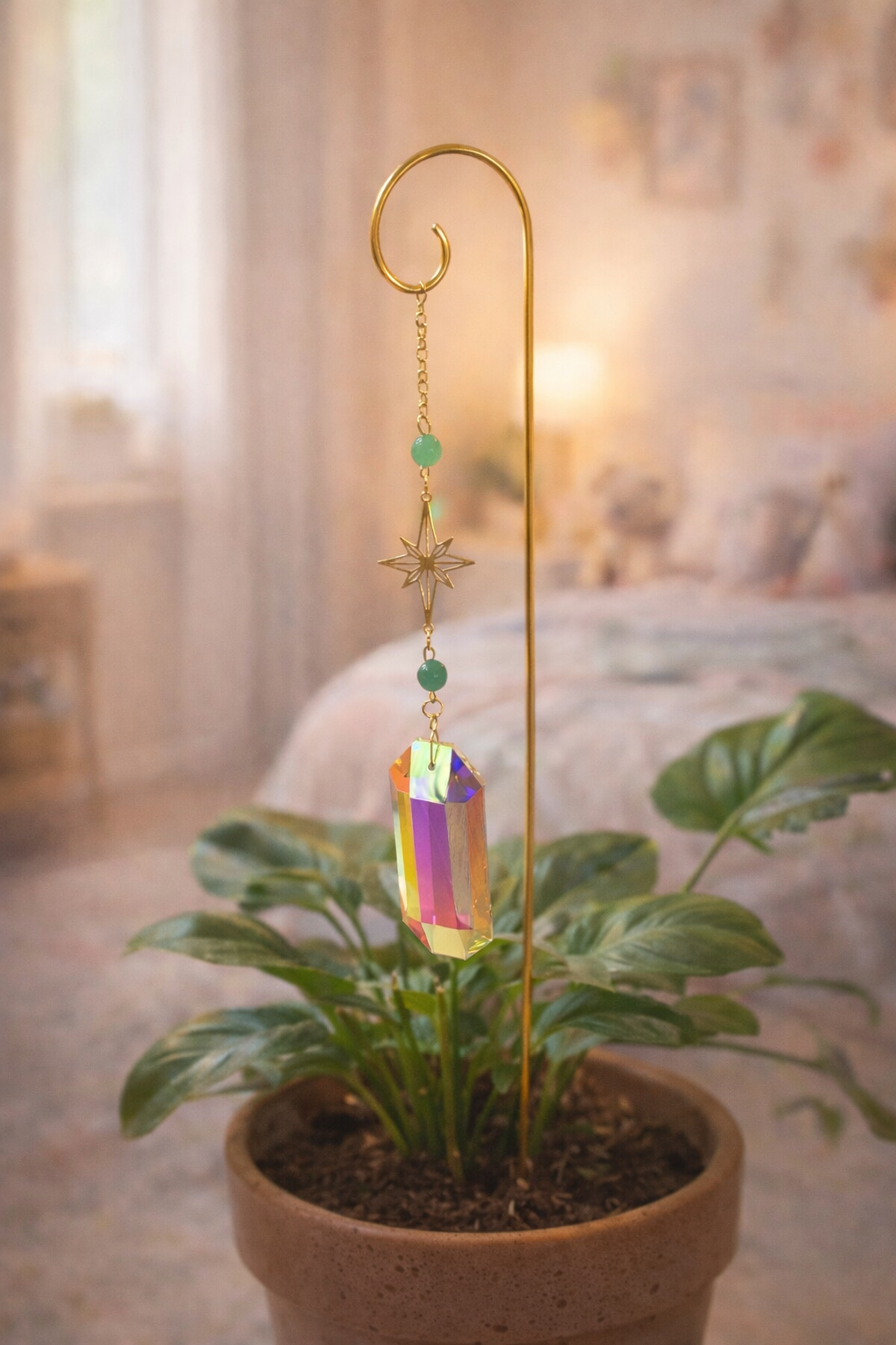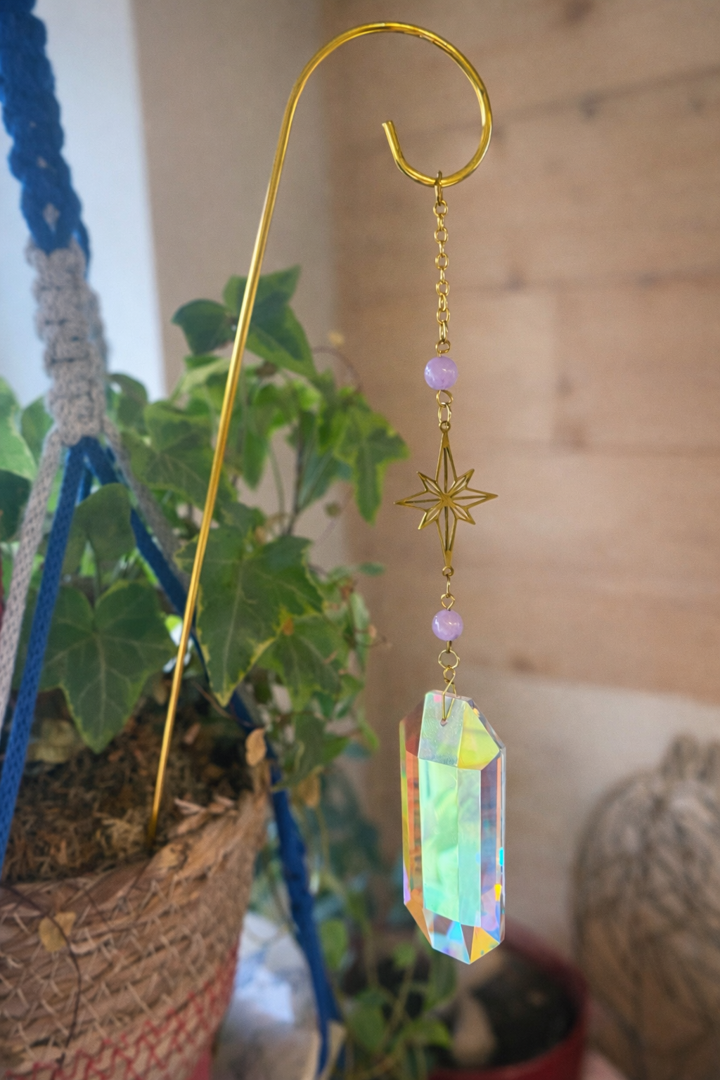 Au fil de la lumière, ses cristaux captent les rayons du soleil et les transforment en une pluie de reflets lumineux, créant une atmosphère douce, chaleureuse et réconfortante.