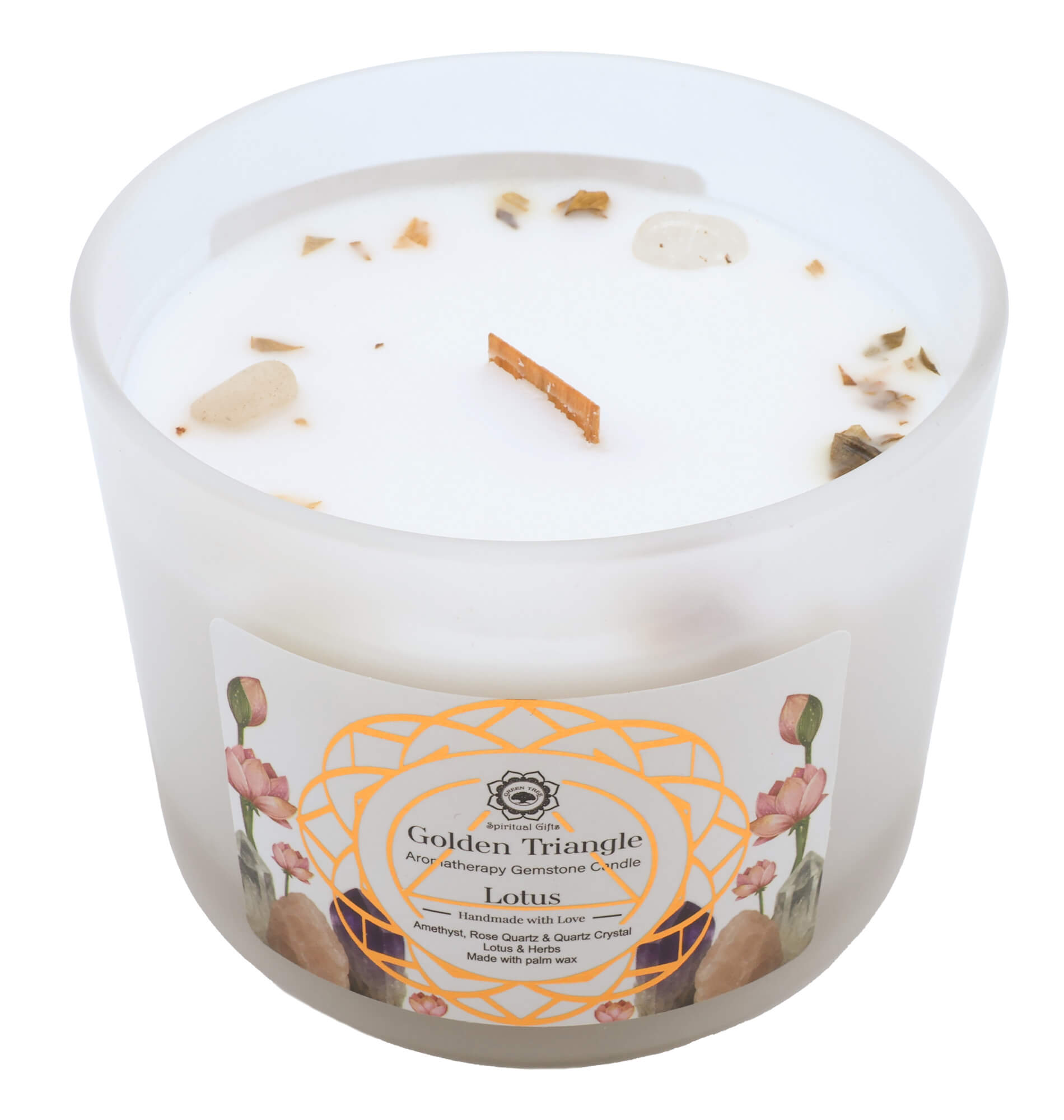 Bougie unique, incrustée de minéraux et fleurs séchées.