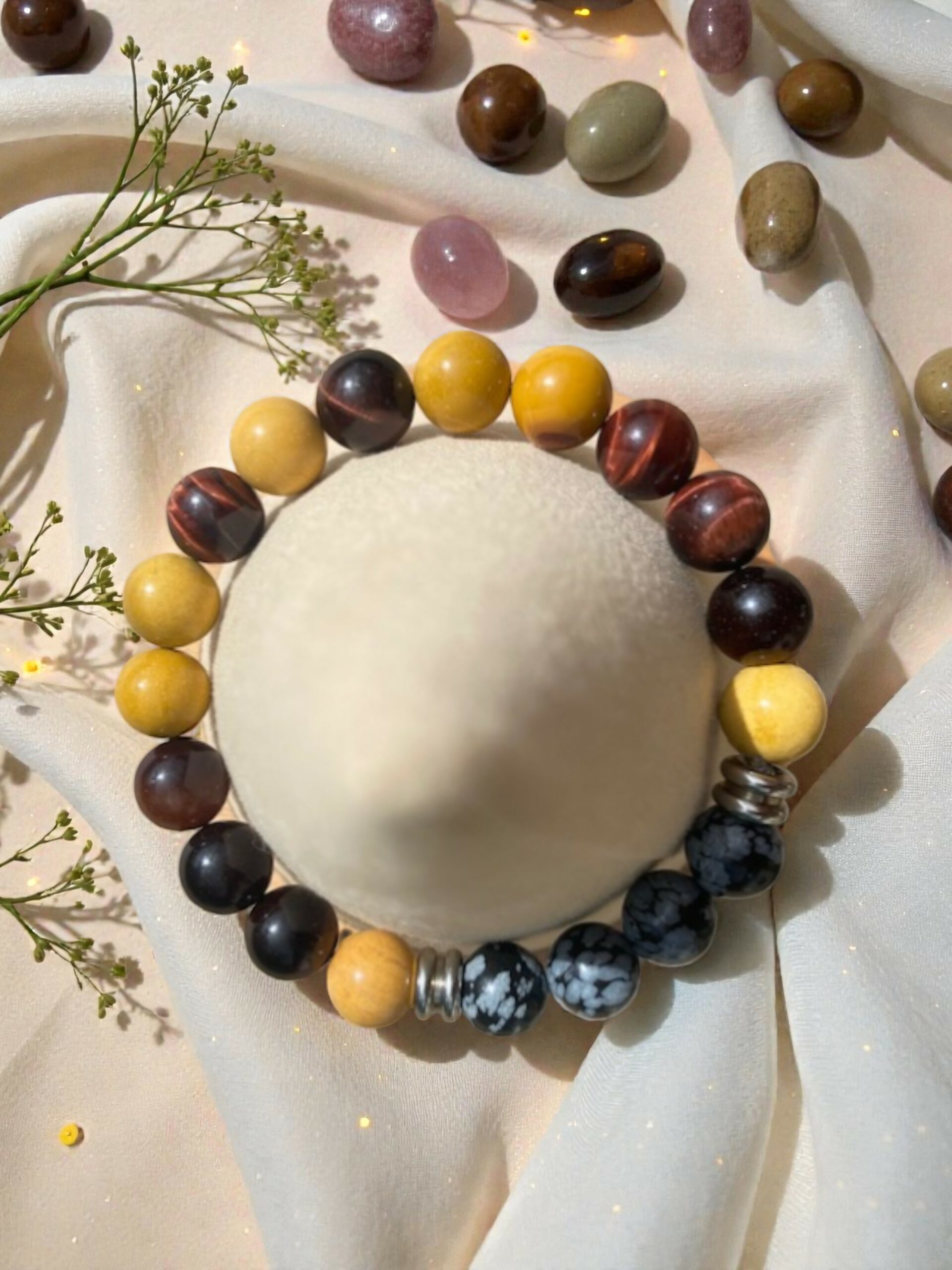 “Je suis libre, puissant, enraciné dans ma vérité.” Il est composé de 3 pierres naturelles différentes :