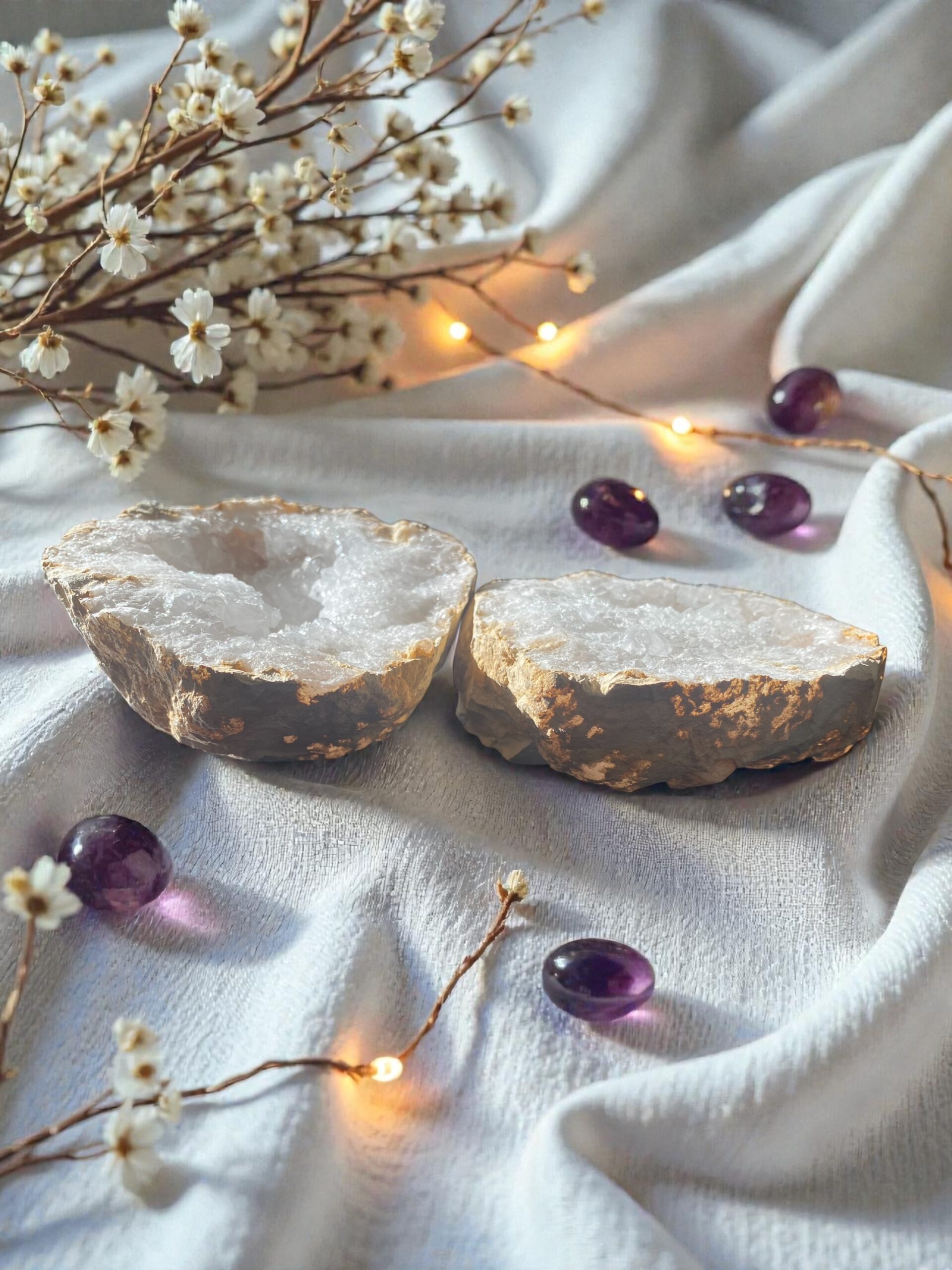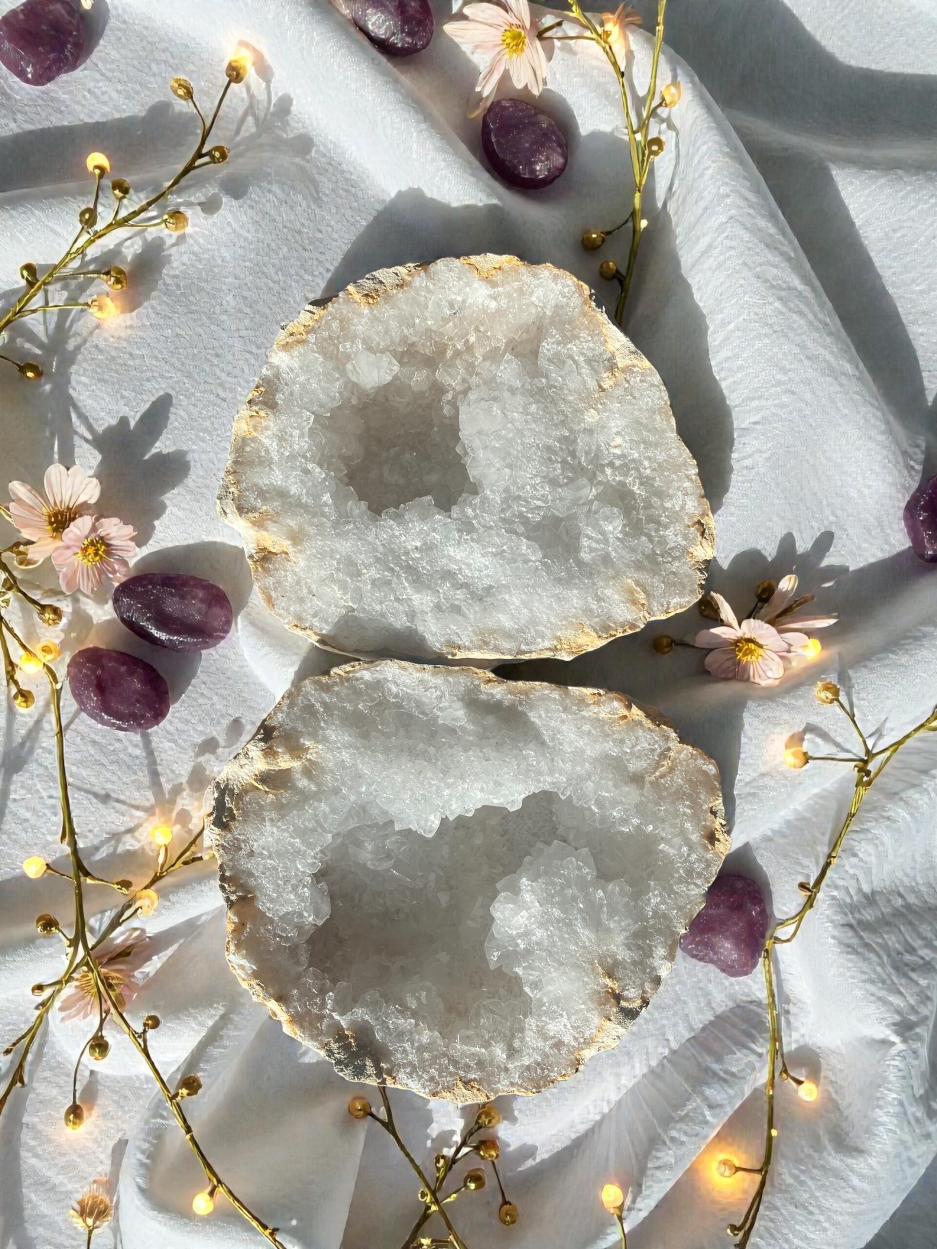 Chaque géode est unique, façonnée par le temps et la nature, ce qui en fait à la fois un objet énergétique puissant et une pièce décorative minérale d’exception.