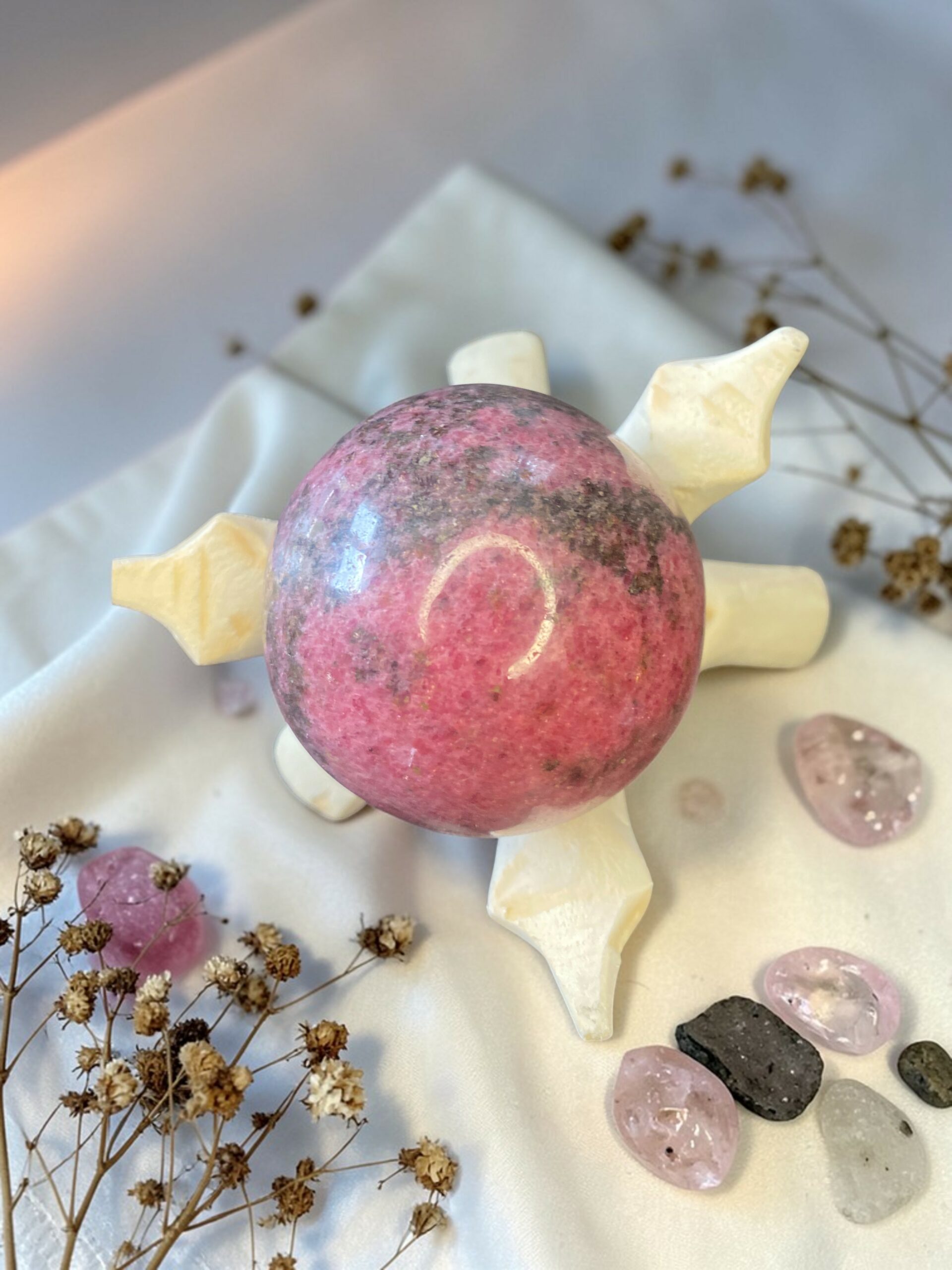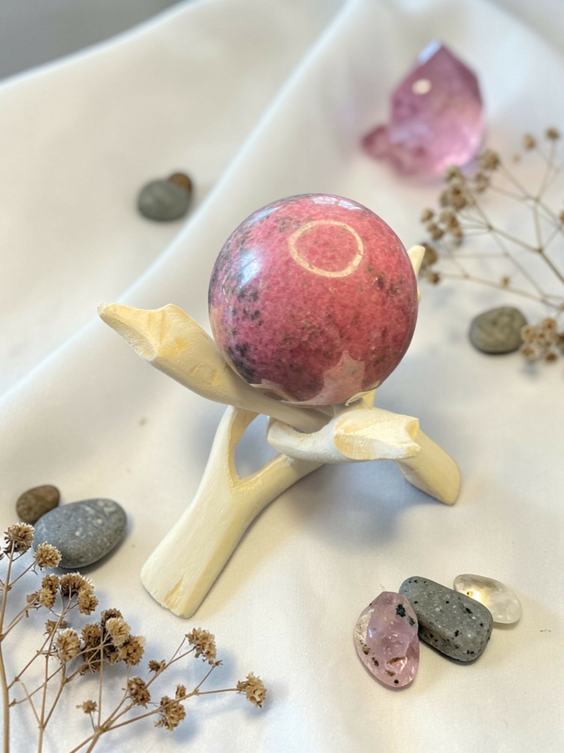 Chaque sphère est unique, façonnée dans une pierre naturelle, avec ses nuances, ses veines, ses vibrations propres. Elle devient à la fois un objet décoratif fort, un élément énergétique subtil et une présence minérale vivante dans l’espace.